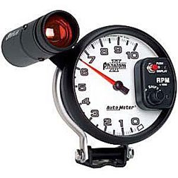 (5" Shift-Lite Tachometer - 10,000 RPM - Operates on most 4,6, and 8 cylinder Engines and is compatible with most points, standard, and electronic ignitions) These Phantom II analog gauges are designed for custom applications such as street rods, Pro Street, or anywhere you want a personalized look. They feature the same Auto Meter quality, but with their black trim rings and white faces, the Phantom series gauges offer you a distinct, alternative look. Their intense "through-the-dial" white LED lighting allows these gauges to have a dark dial with a distinct, illuminated pointer and increments at night.